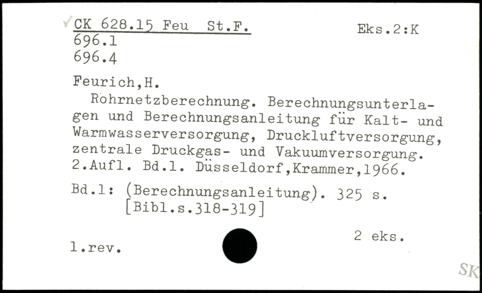 Rohrnetzberechnung. Berechnungsunterlagen und Berechnungsanleitung für Kalt- und Warmwasserversorgung, Druckluftversorgung, zentrale Druckgas- und Vakuumversorgung.