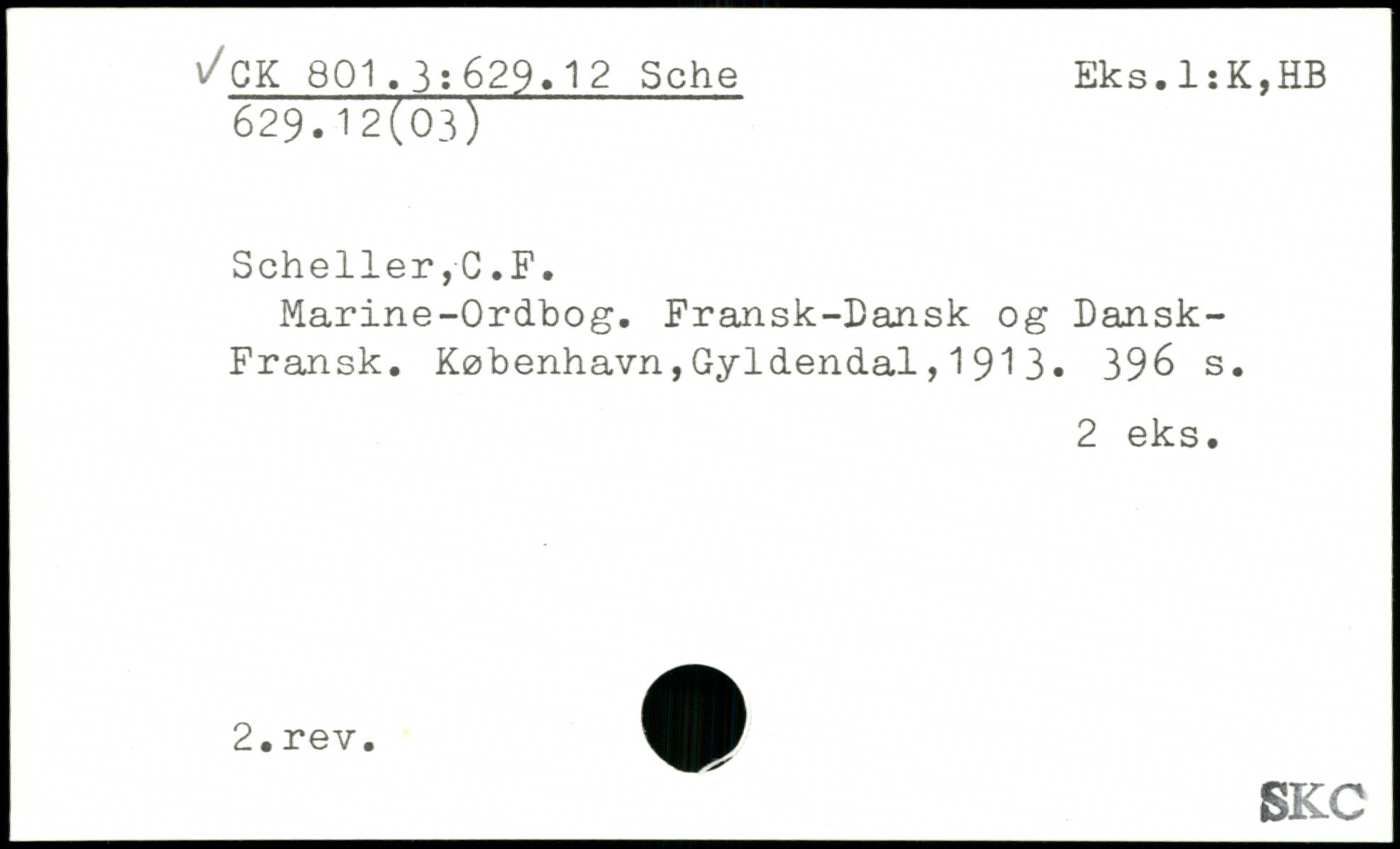 Marine-Ordbog. Fransk-Dansk og Dansk-Fransk. København,Gyldendal, 1 91 3.