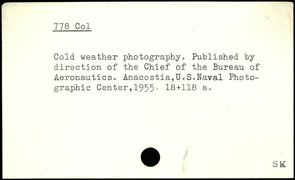 Cold weather photography. Published by direction of the Chief of the Bureau of Aeronautics. Anacostia,U.S.Naval Photographic Center,1955. 18-t-