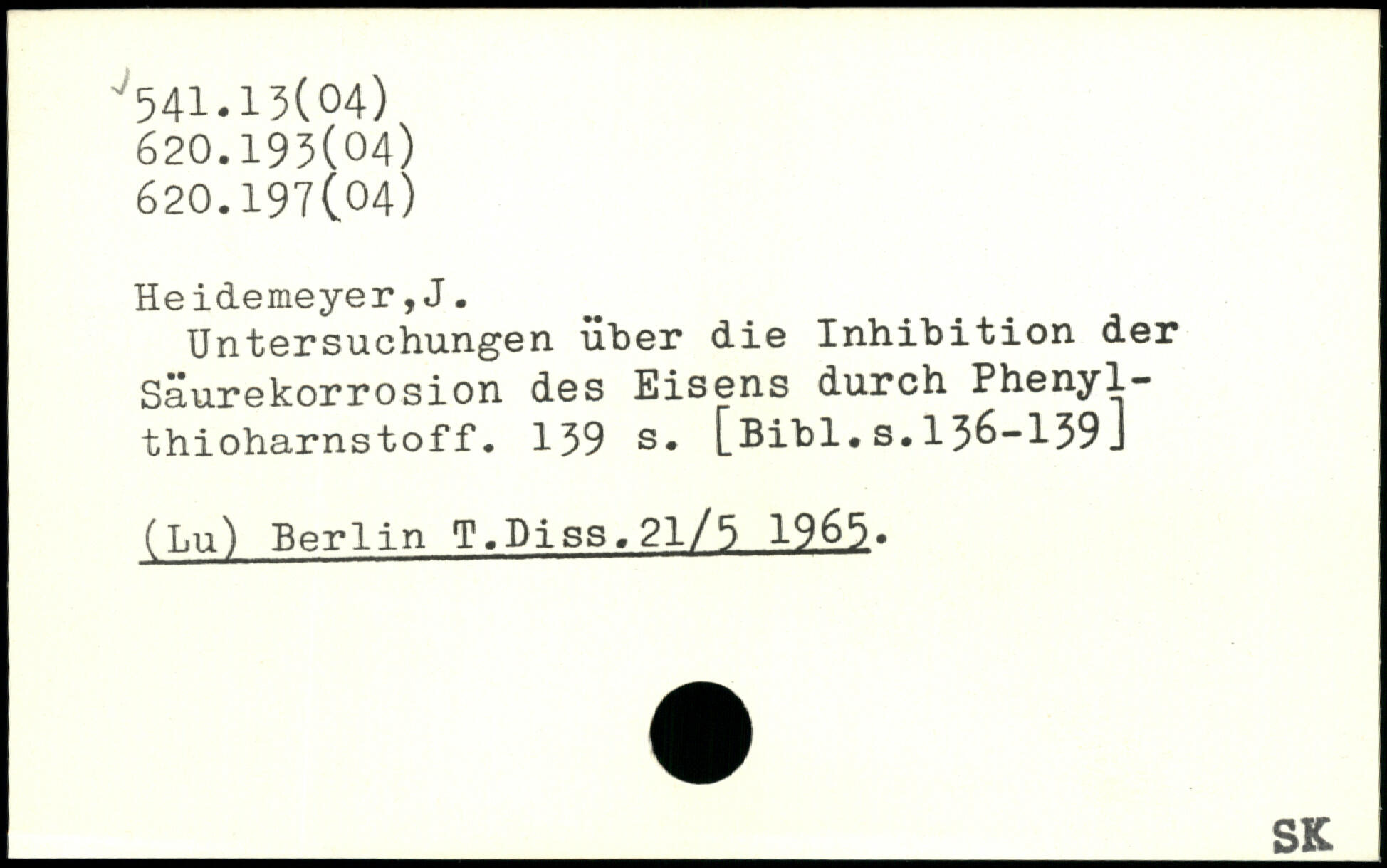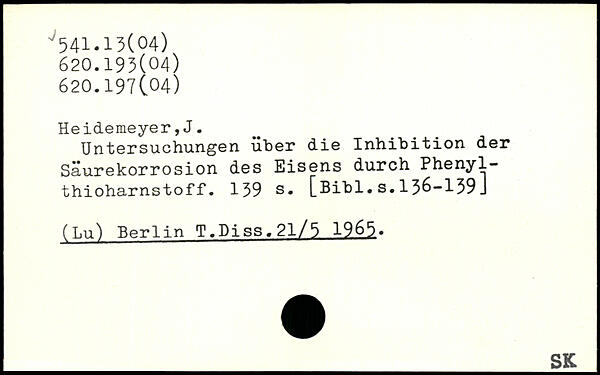Untersuchungen über die Inhibition der Säurekorrosion des Eisens durch Phenyl-thioharnstoff.