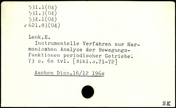 Instrumentelle Verfahren zur Harmonischen Analyse der Bewegungsfunktionen periodischer Getriebe-.