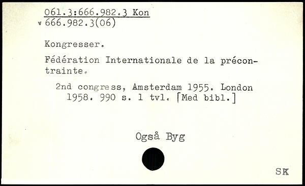 Fédération Internationale de la précontrainte O 2nd congress, Amsterdam 1955'