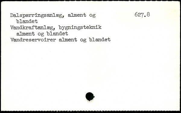 Dalspærrings anlæg, alment og 627.8 blandet Vandkraftanlæg, 'bygningsteknik alment og blandet Vandreservoirer alment og blandet