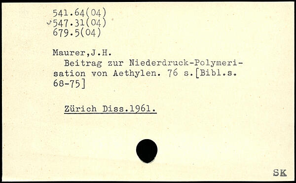 Beitrag zur Niederdruck-Polymerisation von Aethylen. 'Jo s.