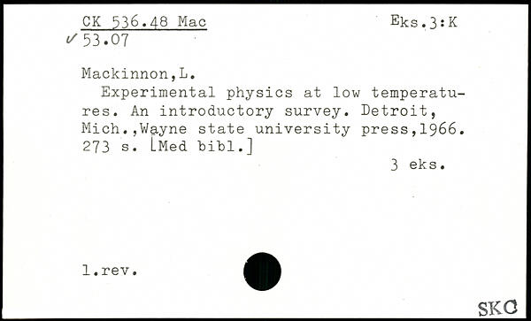 Experimental physics at low temperatures. An introductory survey.