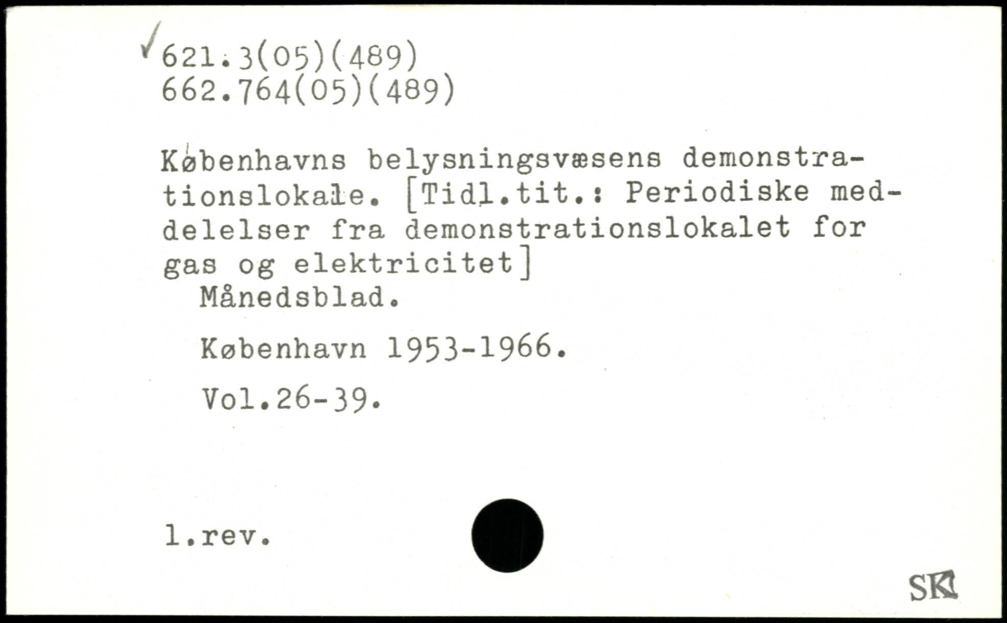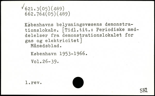 Københavns belysningsvæsens demonstrationslokale. [Tidl.tit.s Periodiske meddelelser fra demonstrationslokalet for gas og elektricitet] Månedsblad.