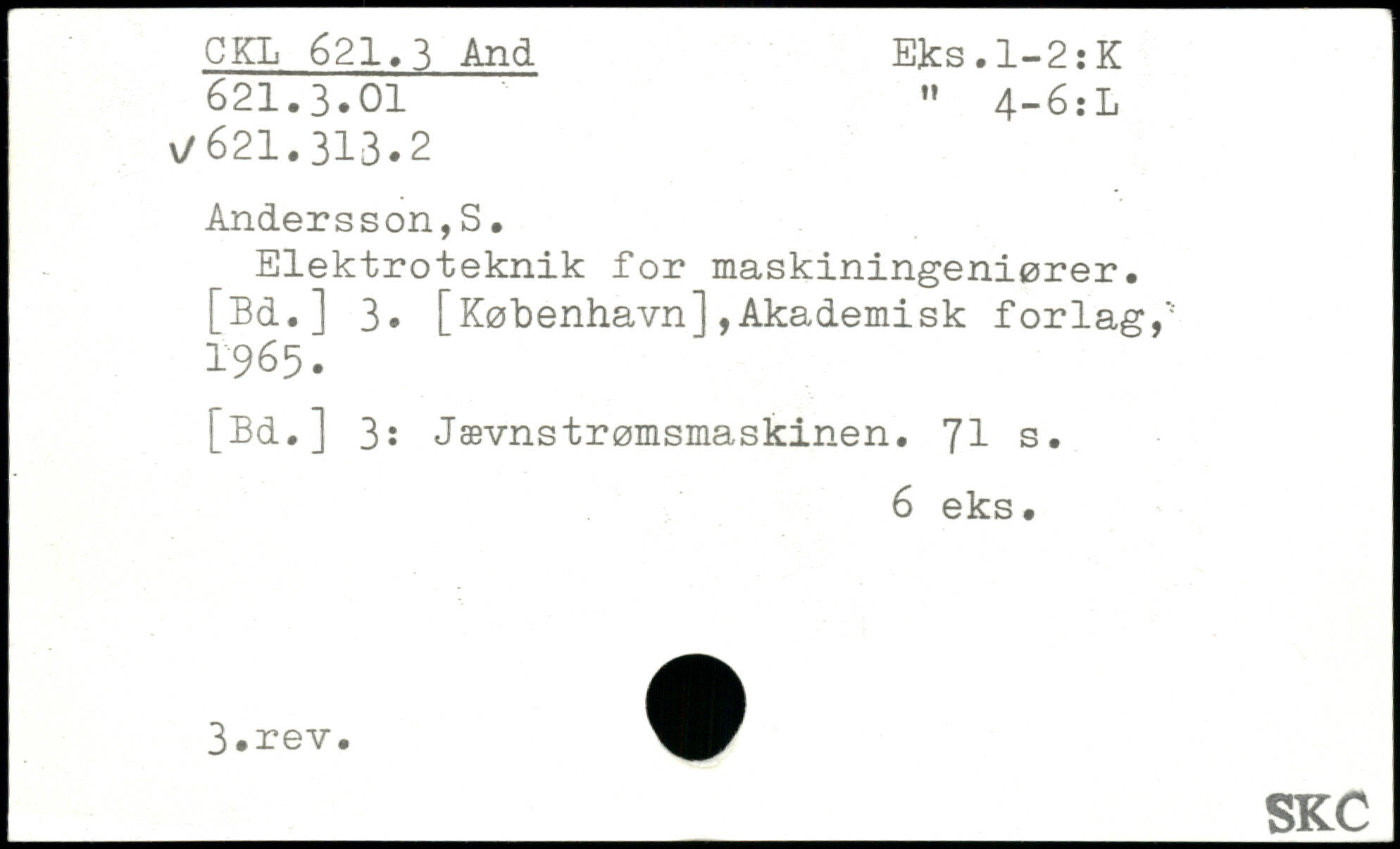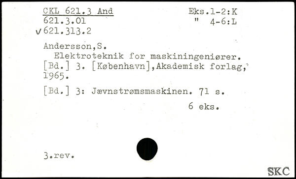 Elektroteknik for maskiningeniører. [Bd.] 3. [København],Akademisk forlag,'' 1965. [Bd.] 3: Jævnstrømsmaskinen.
