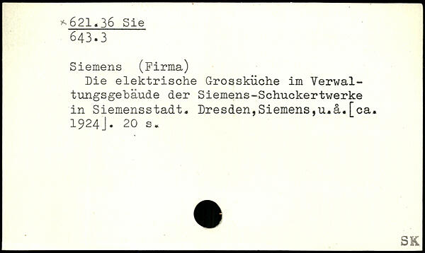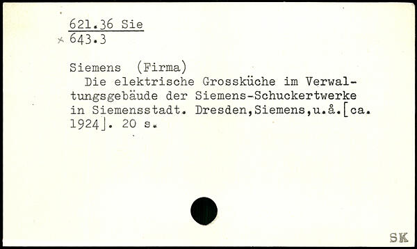 Die elektrische Grossküche im Verwaltungsgebäude der Siemens-Schuckertwerke in Siemensstadt. Dresden,Siemens,u.ä.[ca. 1924J.