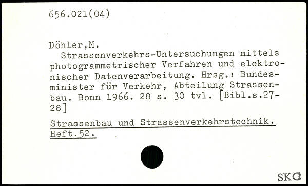 Strassenverkehrs-Untersuchungen mittels photogrammetrischer Verfahren und elektronischer Datenverarbeitung. Hrsg.: Bundesminister für Verkehr, Abteilung Strassen-bau. Bonn 1966.