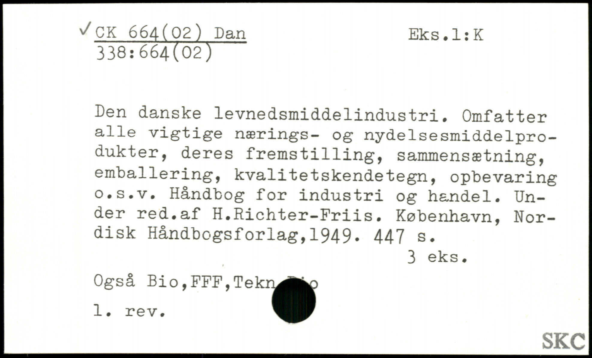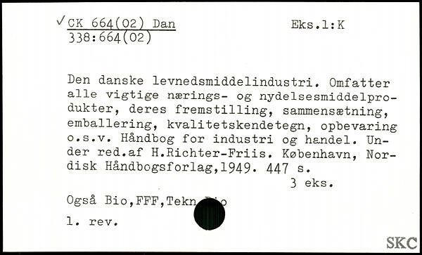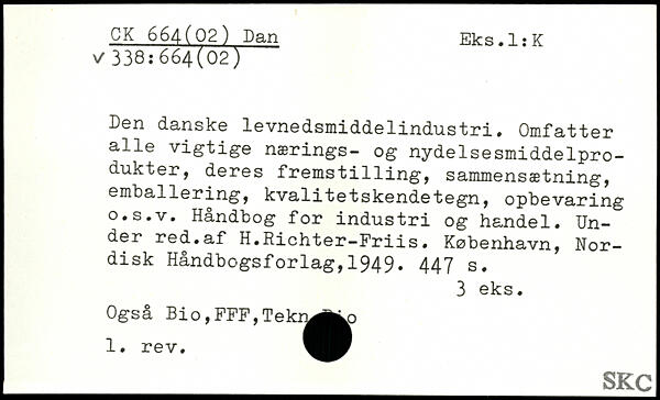 Den danske levnedsmiddelindustri. Omfatter alle vigtige nærings- og nydelsesmiddelprodukter, deres fremst1111ng, sammensætning, emballering, kvalitetskendetegn, opbevaring 0. s.v. Håndbog for industri og handel. Under red.af H.Richter-Friis.