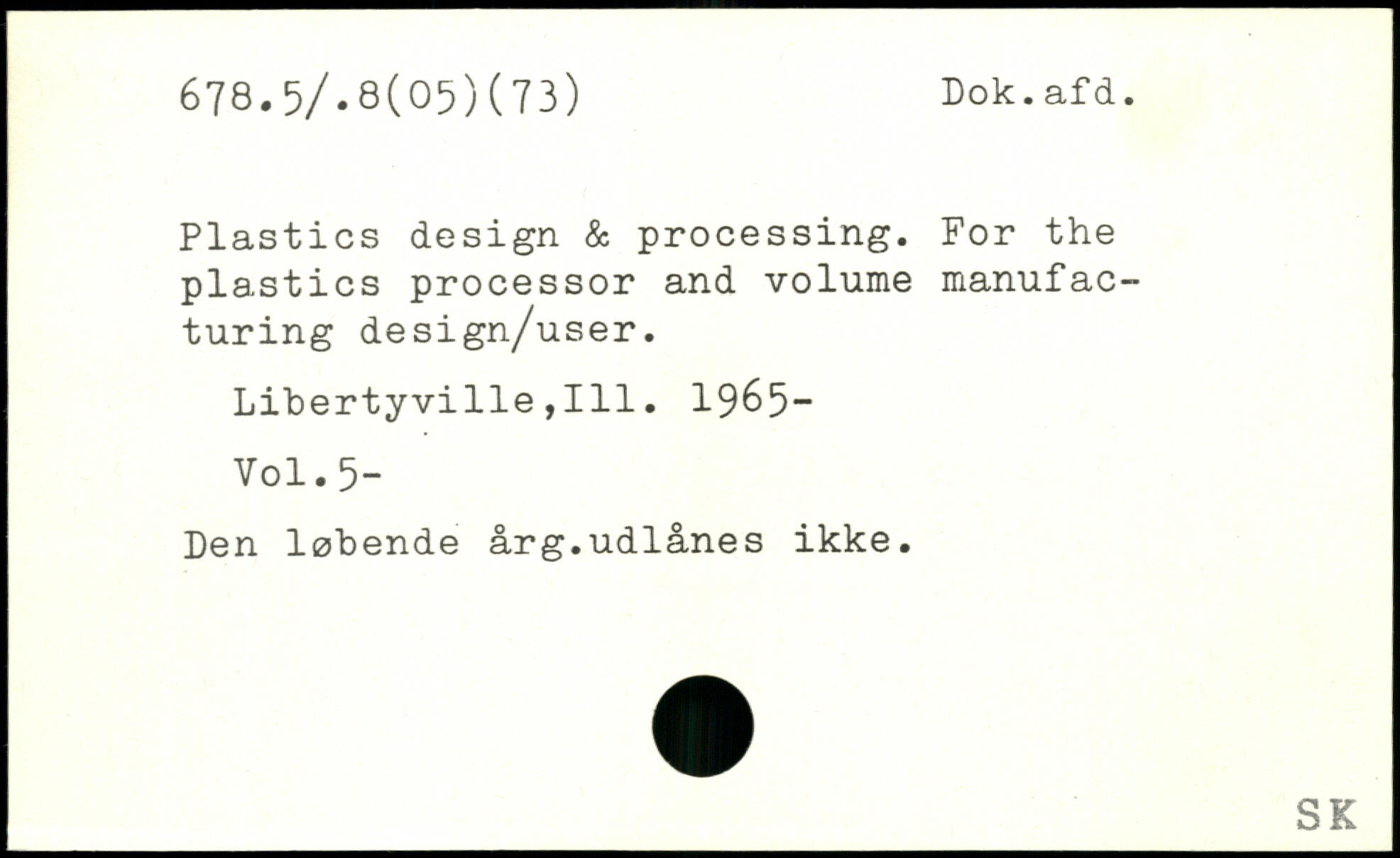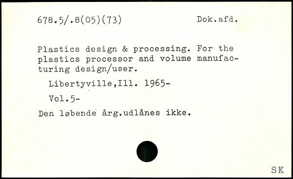 Plastics design & processing. For the plastics processor and volume manufacturing design/user. Libertyville,111. 1965-