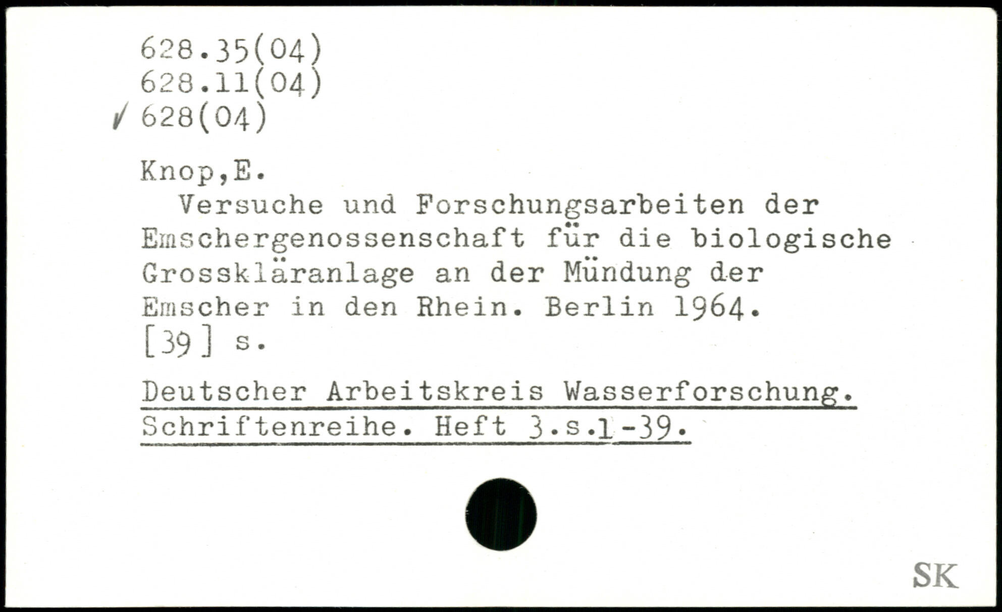 Versuche und Forschungsarbeiten der Emschergenossenschaft für die biologische Grosskläranlage an der Mündung der Erascher in den Rhein.