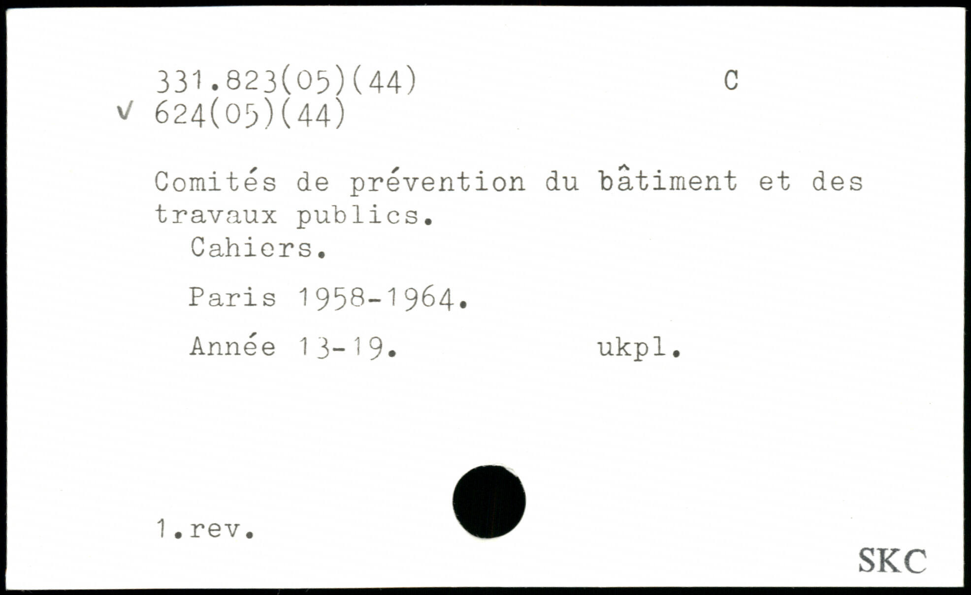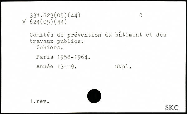 Comités de prévention du bâtiment et des travaux publics. Cahiers.