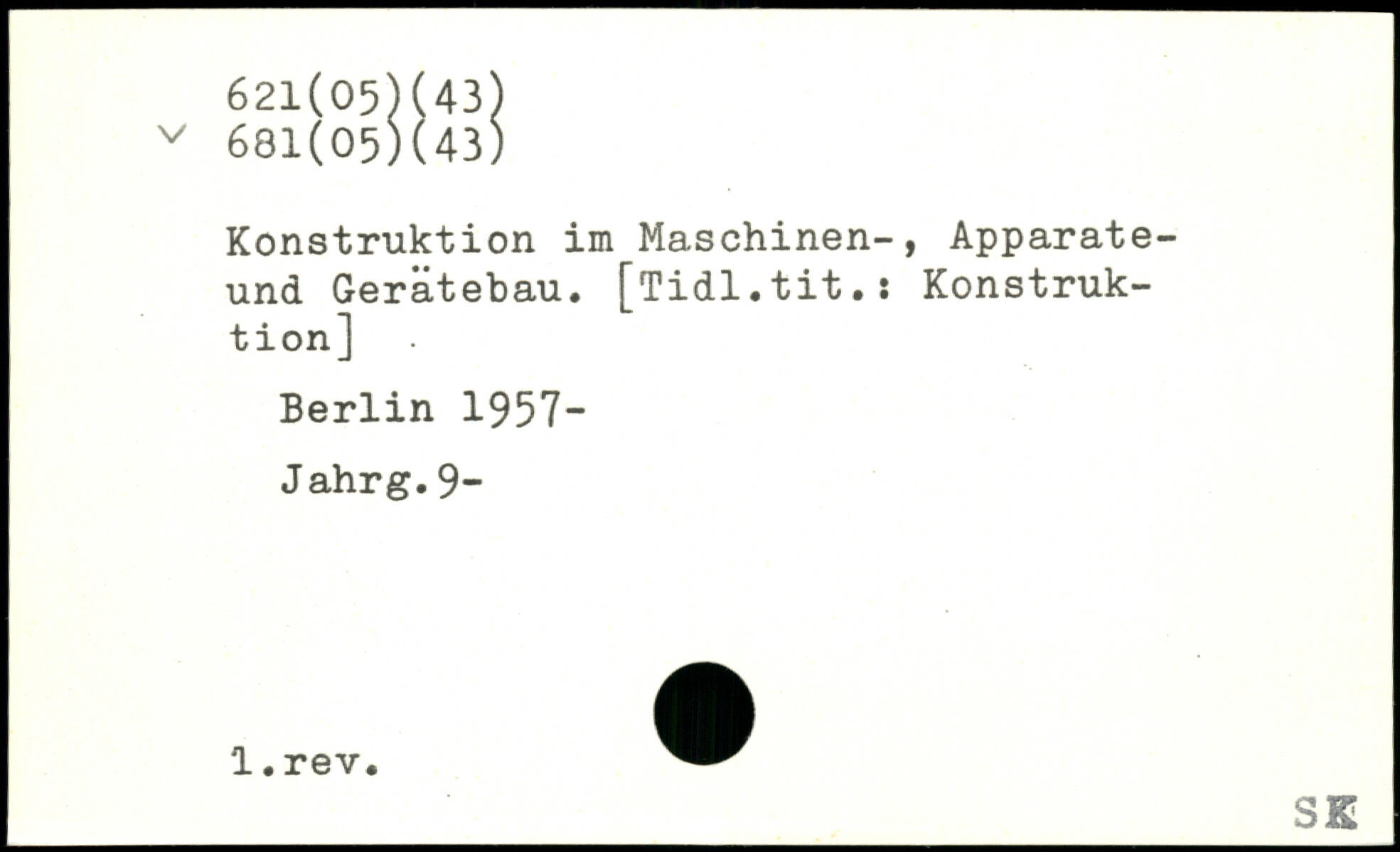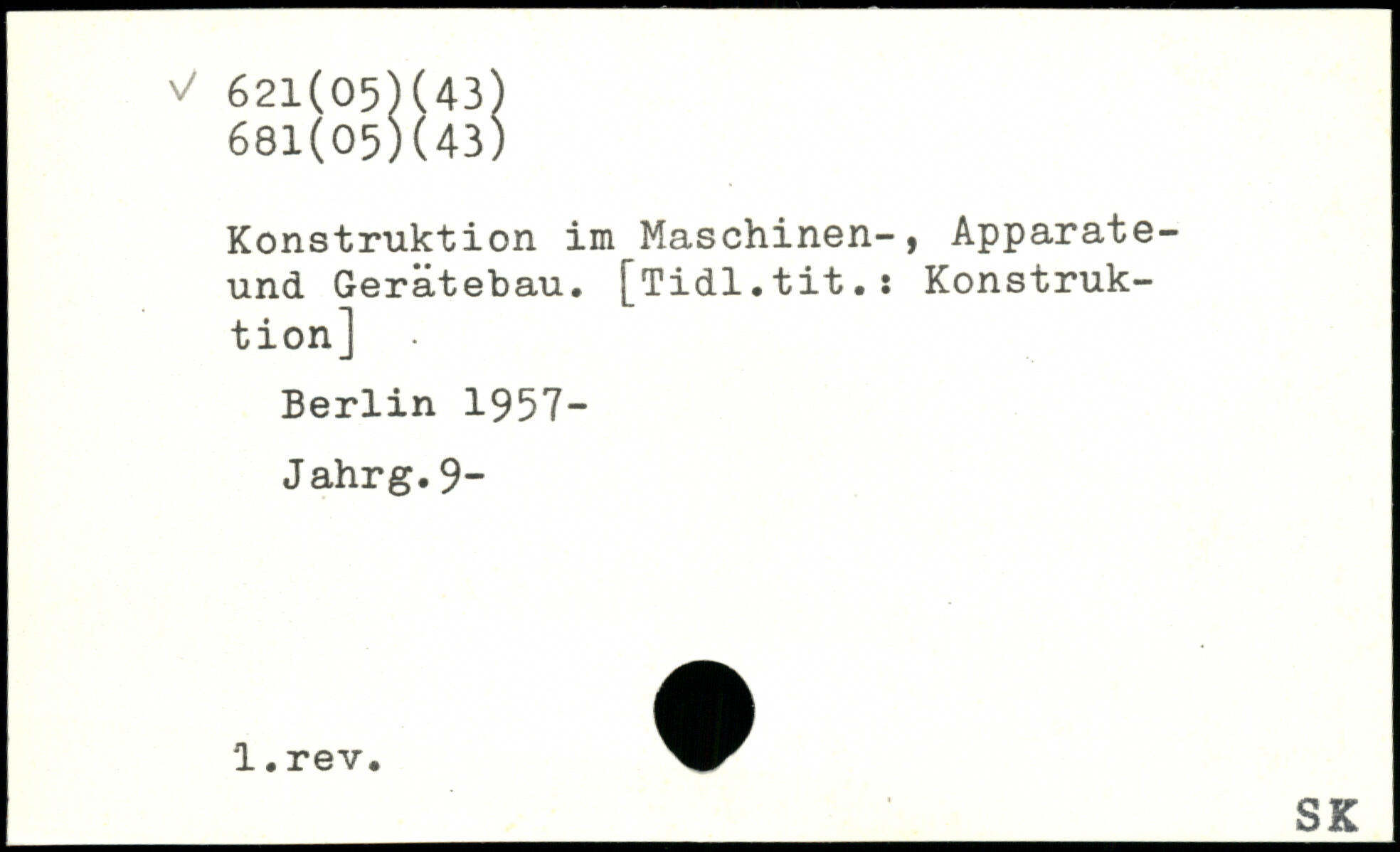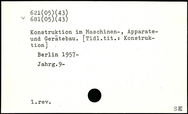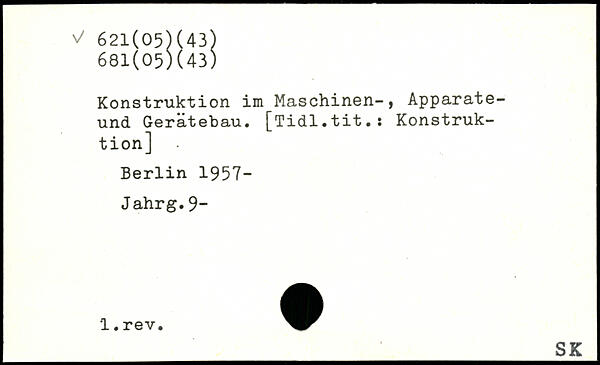 Konstruktion im Maschinen-, Apparate-und Gerätebau. [Tidl.tit.s Konstruktion]