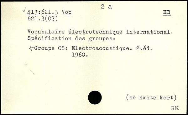Vocabulaire électrotechnique international, Spécification des groupes: ■^.Groupe 08: Electroacoustique. 2.éd, 1960 O (se næste kort) SK