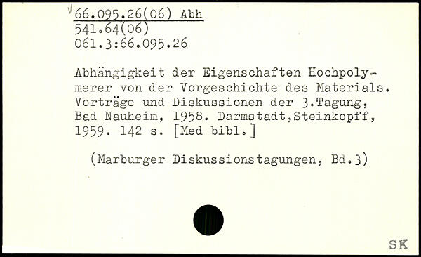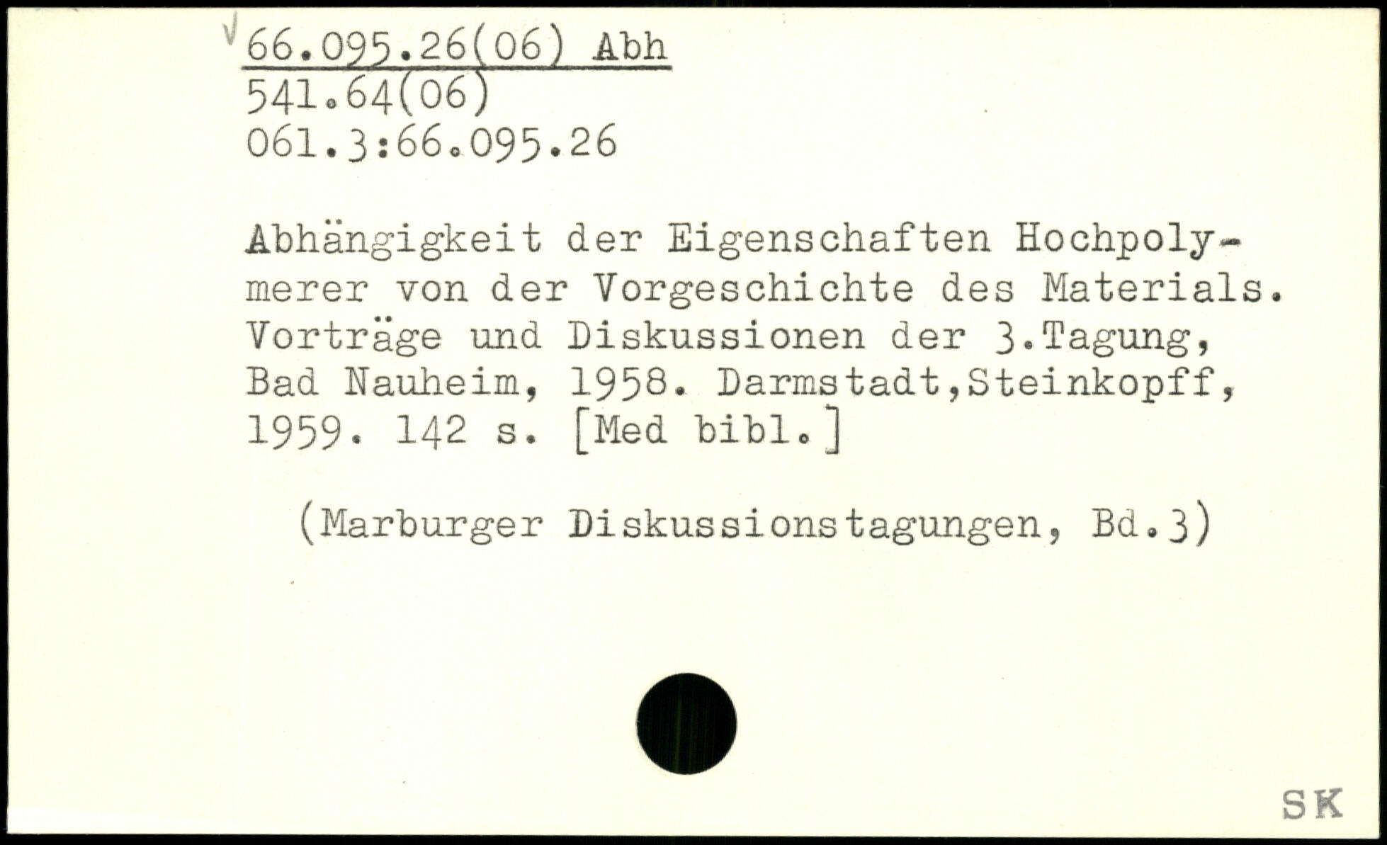 Abhängigkeit der Eigenschaften Hochpolymerer von der Vorgeschichte des Materials. Vorträge und Diskussionen der 3,TagU-ngj Bad Hauheim, 1958