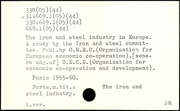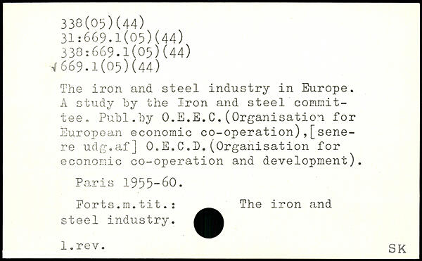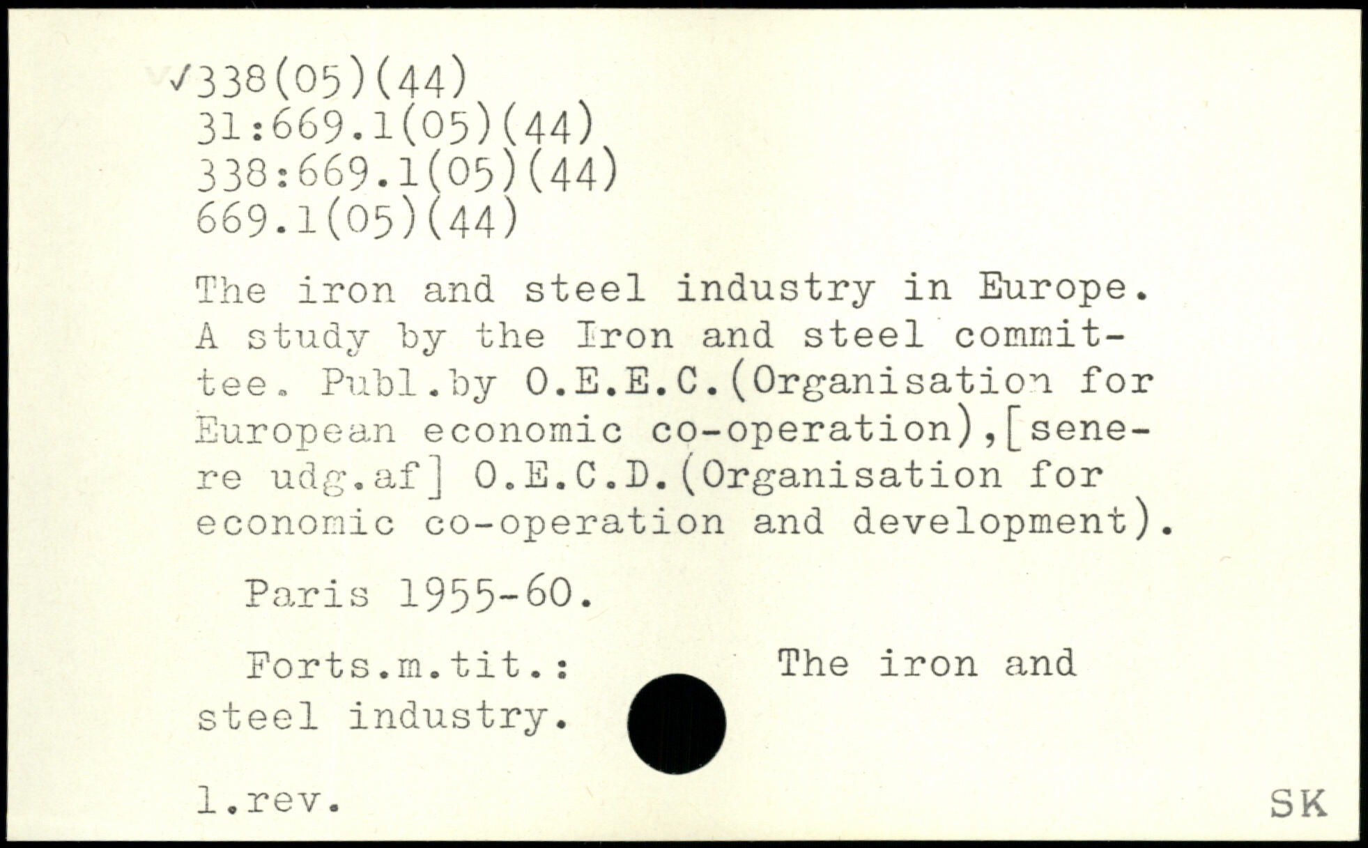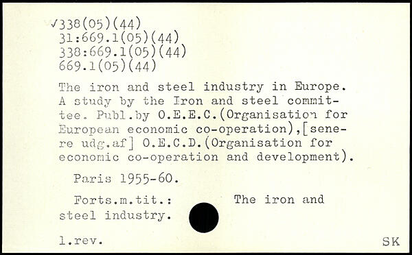 The iron and steel industry in Europe. A study by the Iron and steel committee.