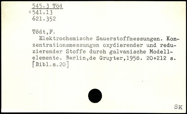 Elektrochemische Sauerstoffmessungeno Konzentrationsmessungen oxydierender und reduzierender Stoffe durch galvanische Modellelemente , Berlin,de Grayter,1958.