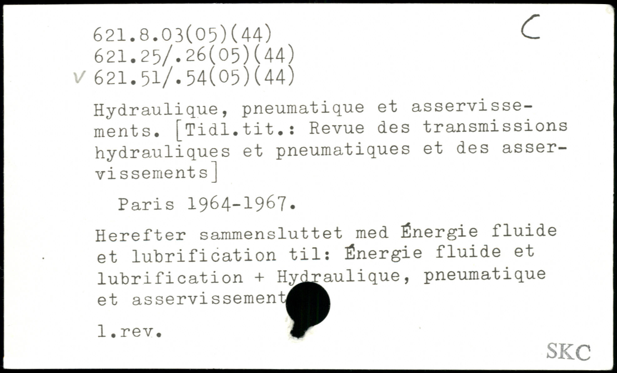 Hydraulique, pneumatique et asservissements. [Tidl.tit.: Revue des transmissions hydrauliques et pneumatiques et des asservissement s ]