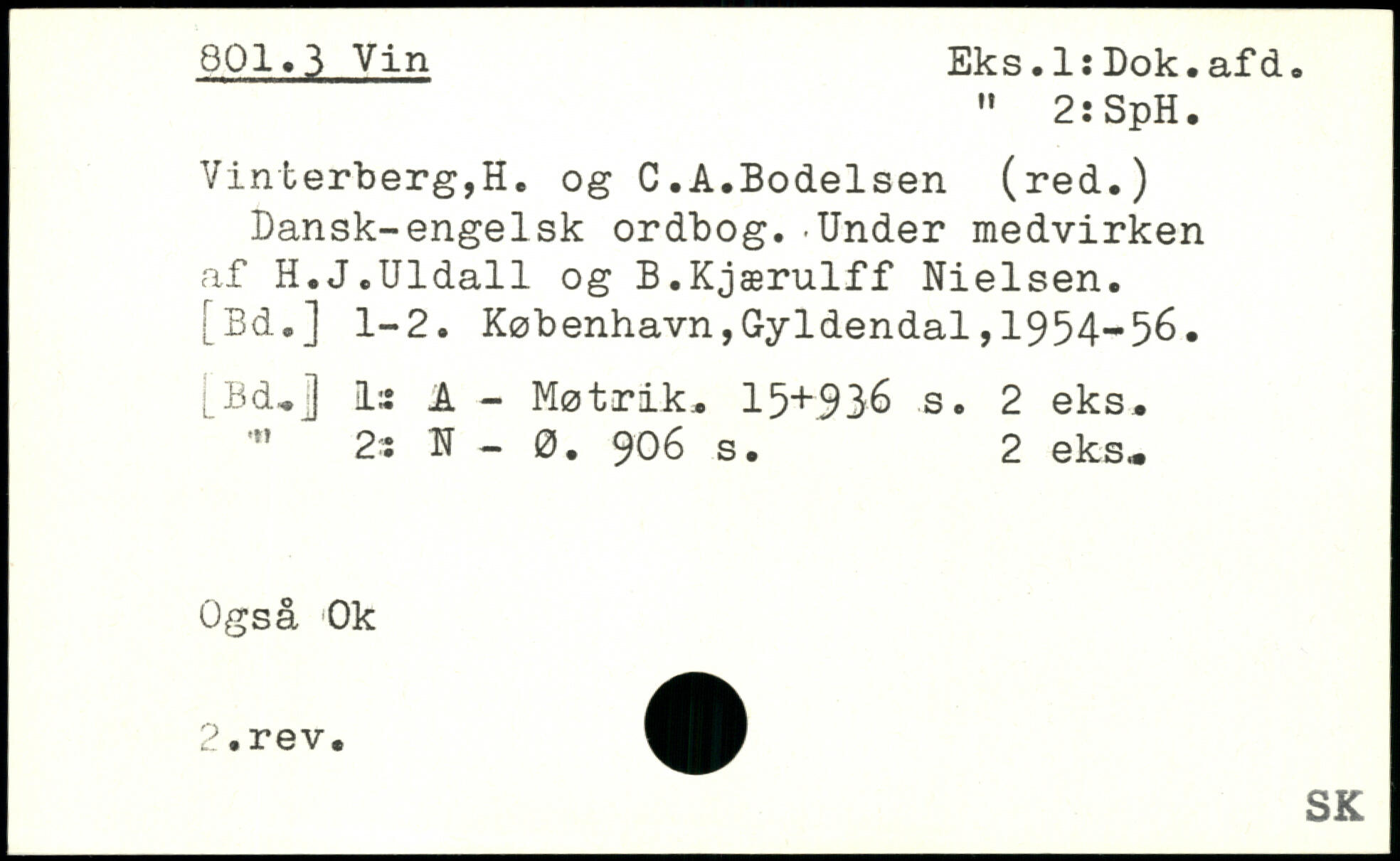 Dansk-engelsk ordbog. Under medvirken af H.J.Uldall og B.Kjærulff Nielsen. [Bd.] 1-2.