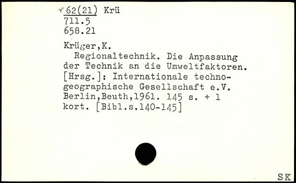 Regionaltechnik. Die Anpassung der Technik an die Umweltfaktoren. [Hrsg.Ji Internationale technogeographische Gesellschaft e.V.