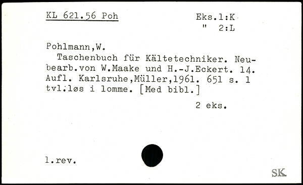 Taschenbuch für Kältetechniker. Neu-bearb.von W.Maake und H.-J.Eckert.
