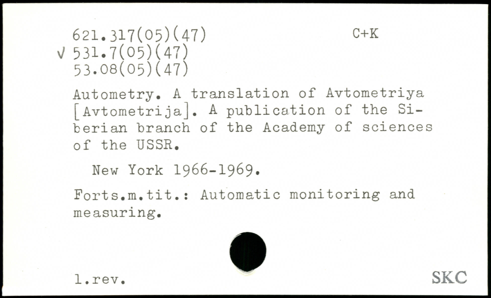 Autometry. A translation of Avtometriya [Avtometrija]. A publication of the Siberian branch of the Academy of sciences of the USSR.