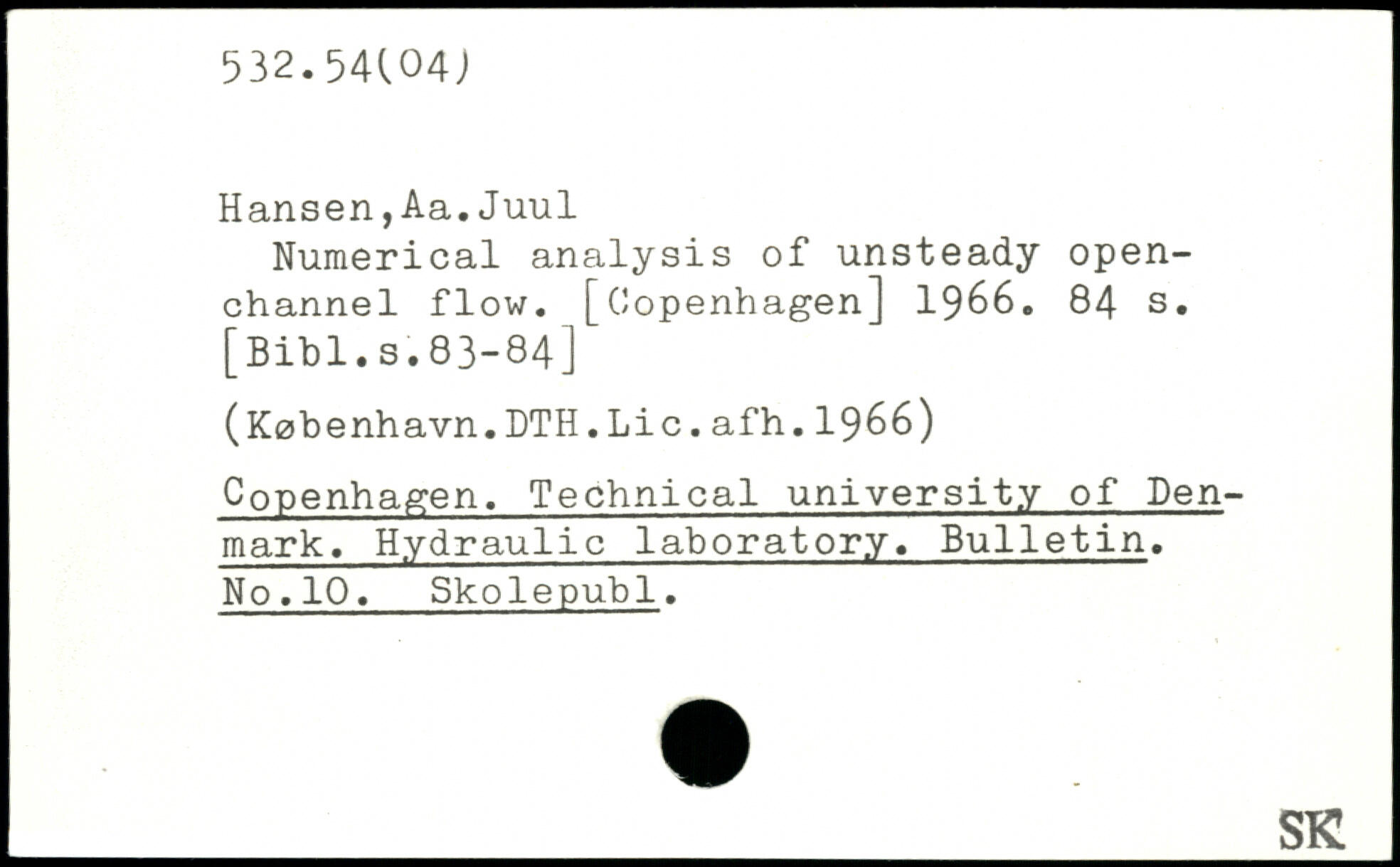 Hansen,Aa.Juul Numerical analysis of unsteady open-channel flow.