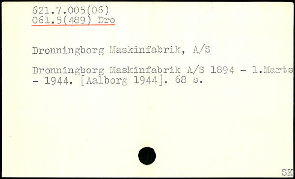 Dronningborg Maskinfabrik, A/S Dronningborg Maskinfabrik A/S 1894 - 1. Mart s - 1944.