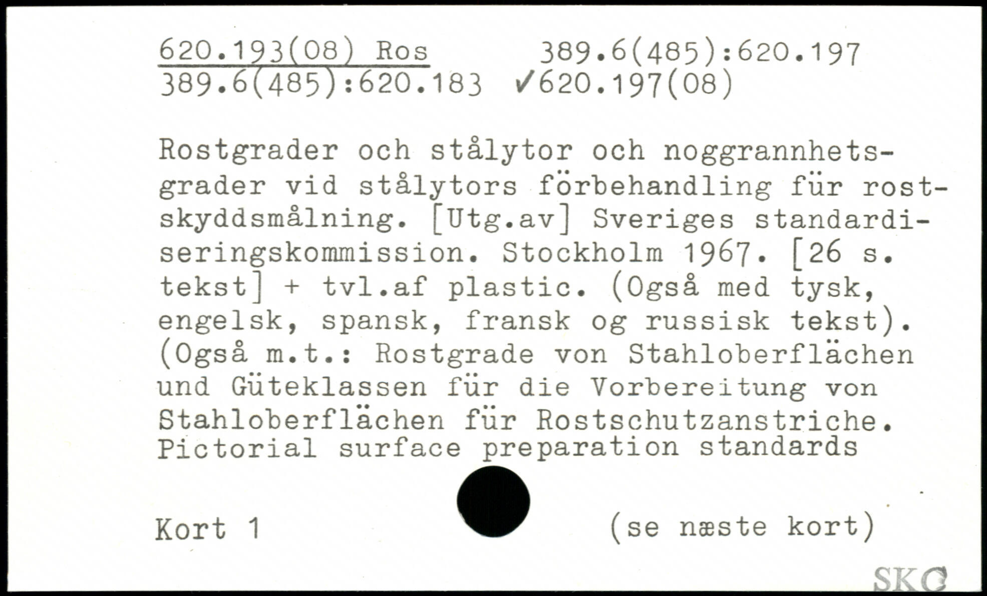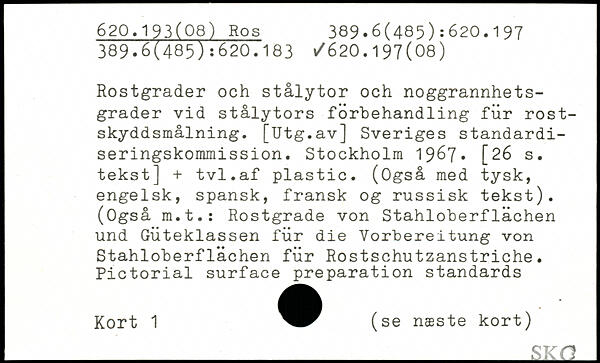 Rostgrader och stålytor och noggrannhets-grader vid stålytors forbehandling für rost-skyddsmålning. [Utg.av] Sveriges standardi-seringskommission.