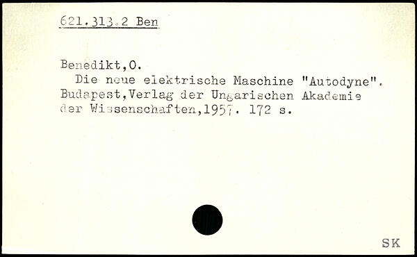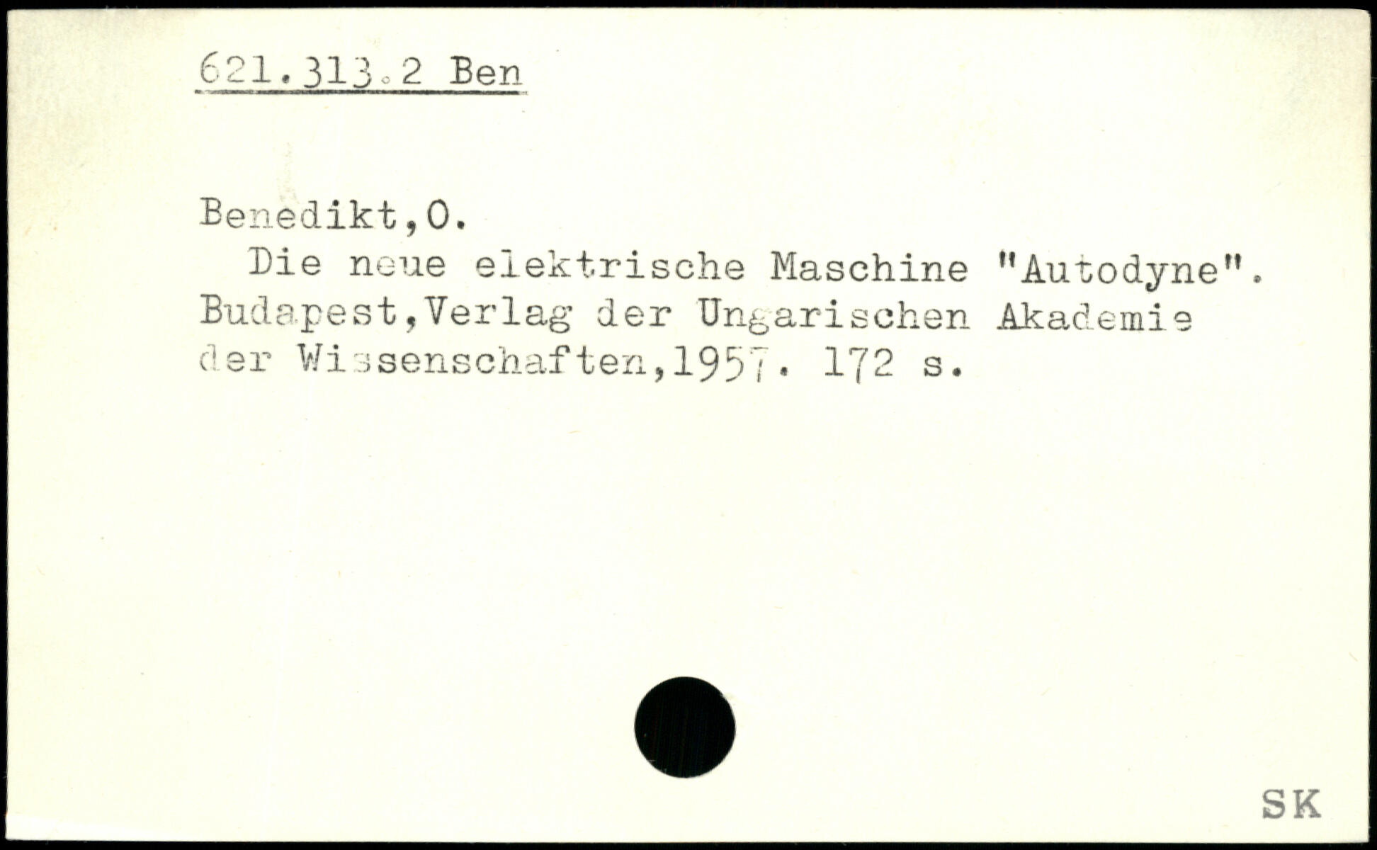 Die neue elektrische Maschine "Autodyne". Budapest,Verlag der Ungarischen Akademie der Wissenschaften,1957