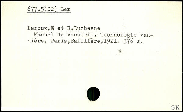 Leroux,E et R.L>uchesne Manuel de vannerie. Technologie van-nière. Paris,Ba1111ere,1921.