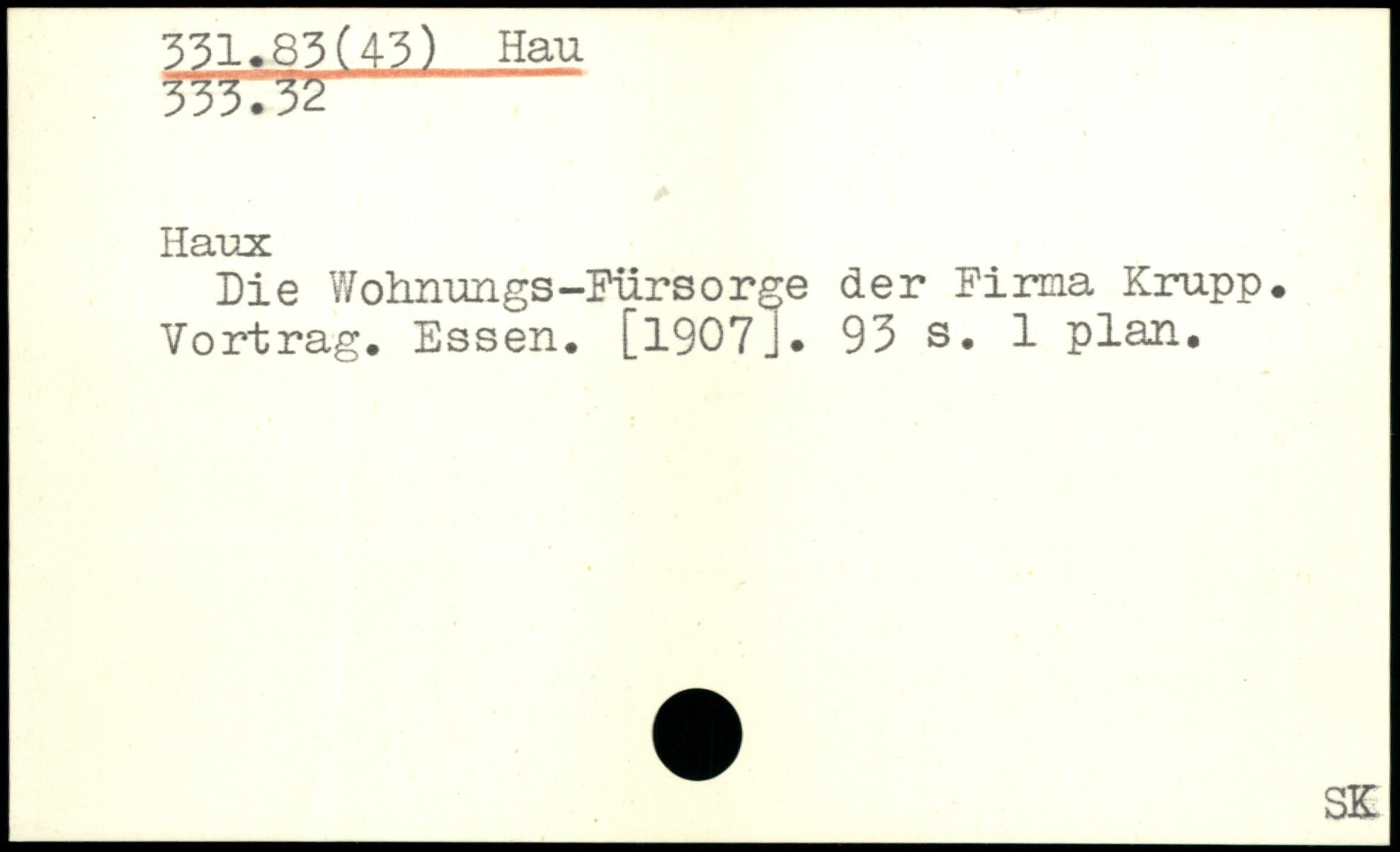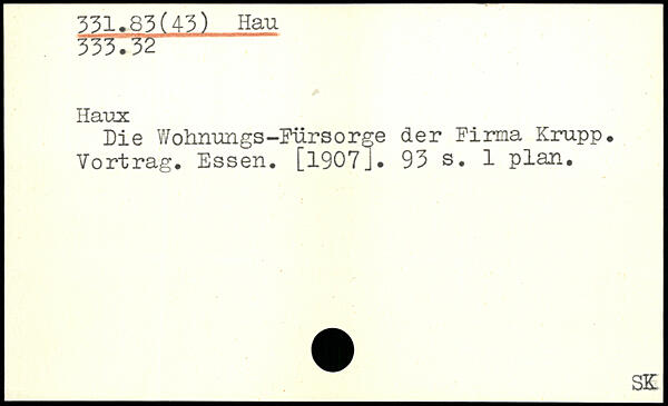 Die V/ohnungs-Fürsorge der Firma Krupp. Vortrag. Essen. [1907j.