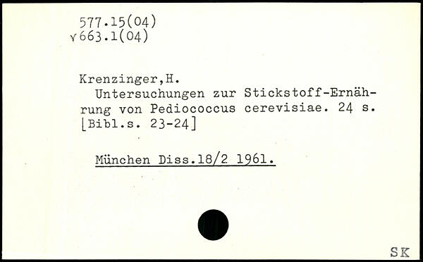Untersuchungen zur Stickstoff-Ernäh-rung von Pediococcus cerevisiae.