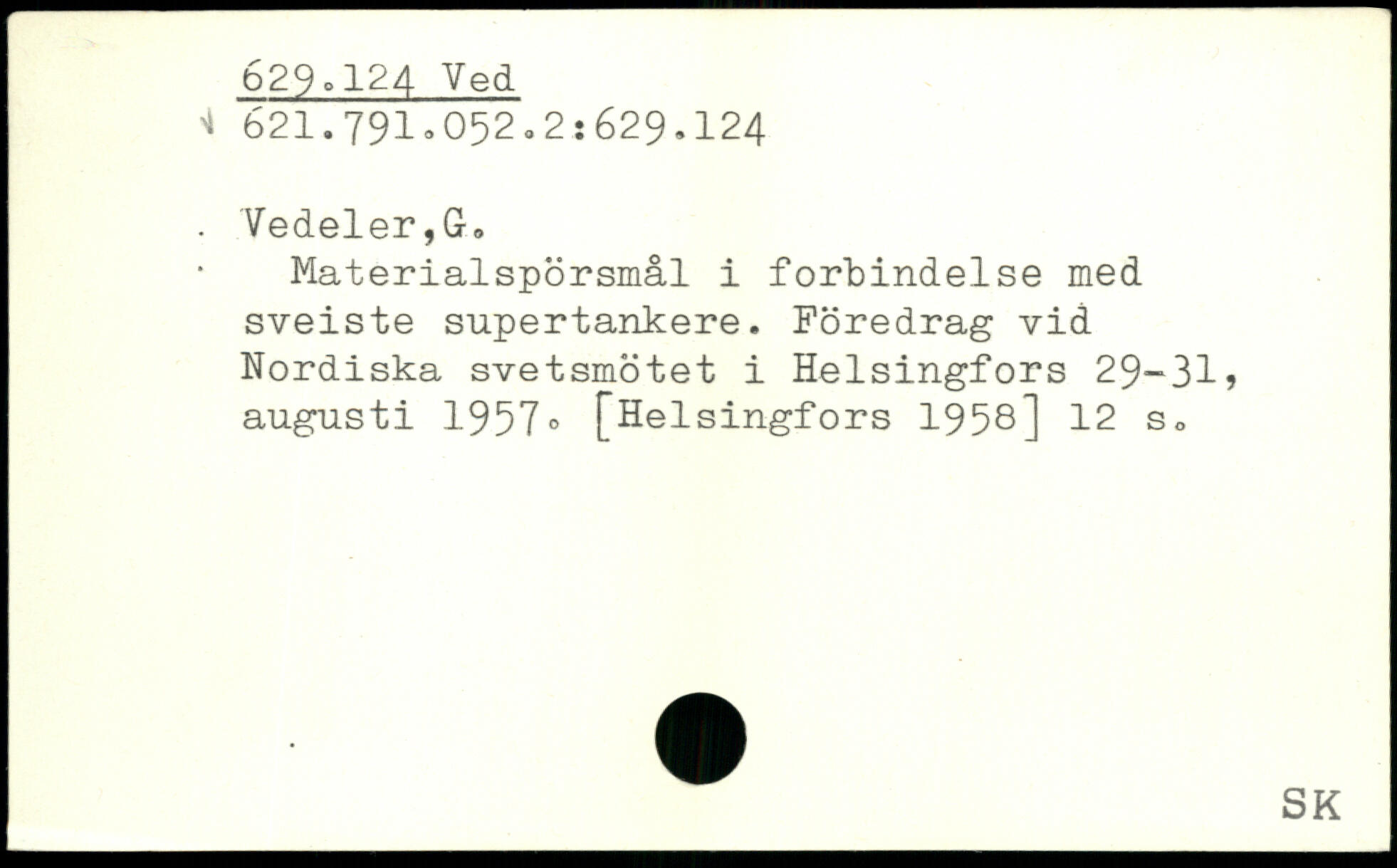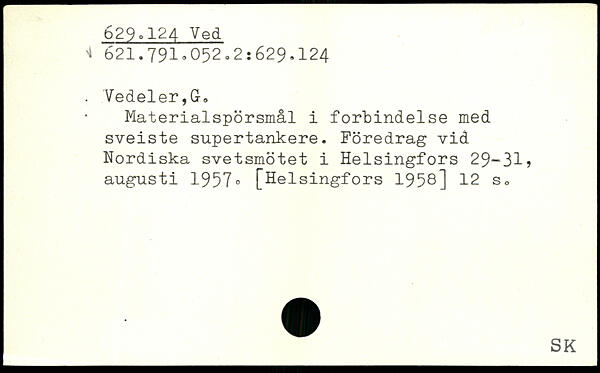 Materialspörsmål i förbindelse med sveiste supertankere. Föredrag vid Nordiska svetsmötet i Helsingfors 29-31, augusti 1957®