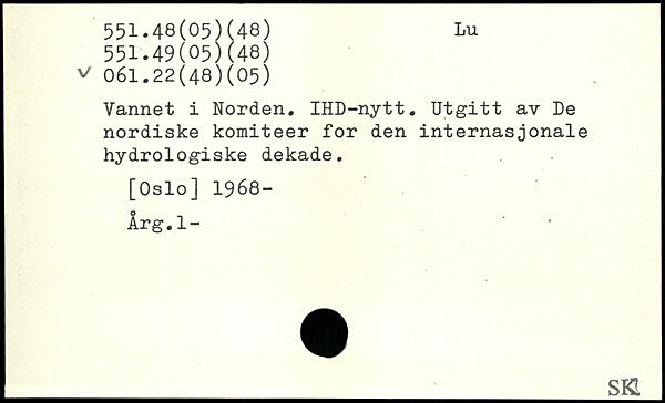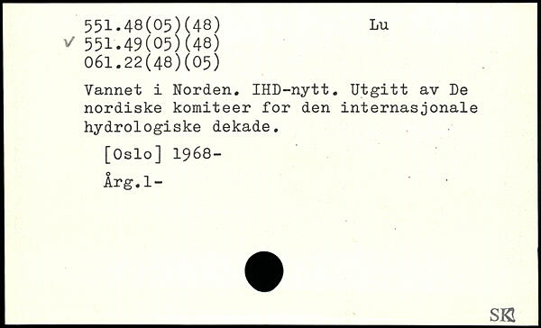 Vannet i Norden. IHD-nytt. Utgitt av De nordiske komiteer for den internasjonale hydrologiske dekade.