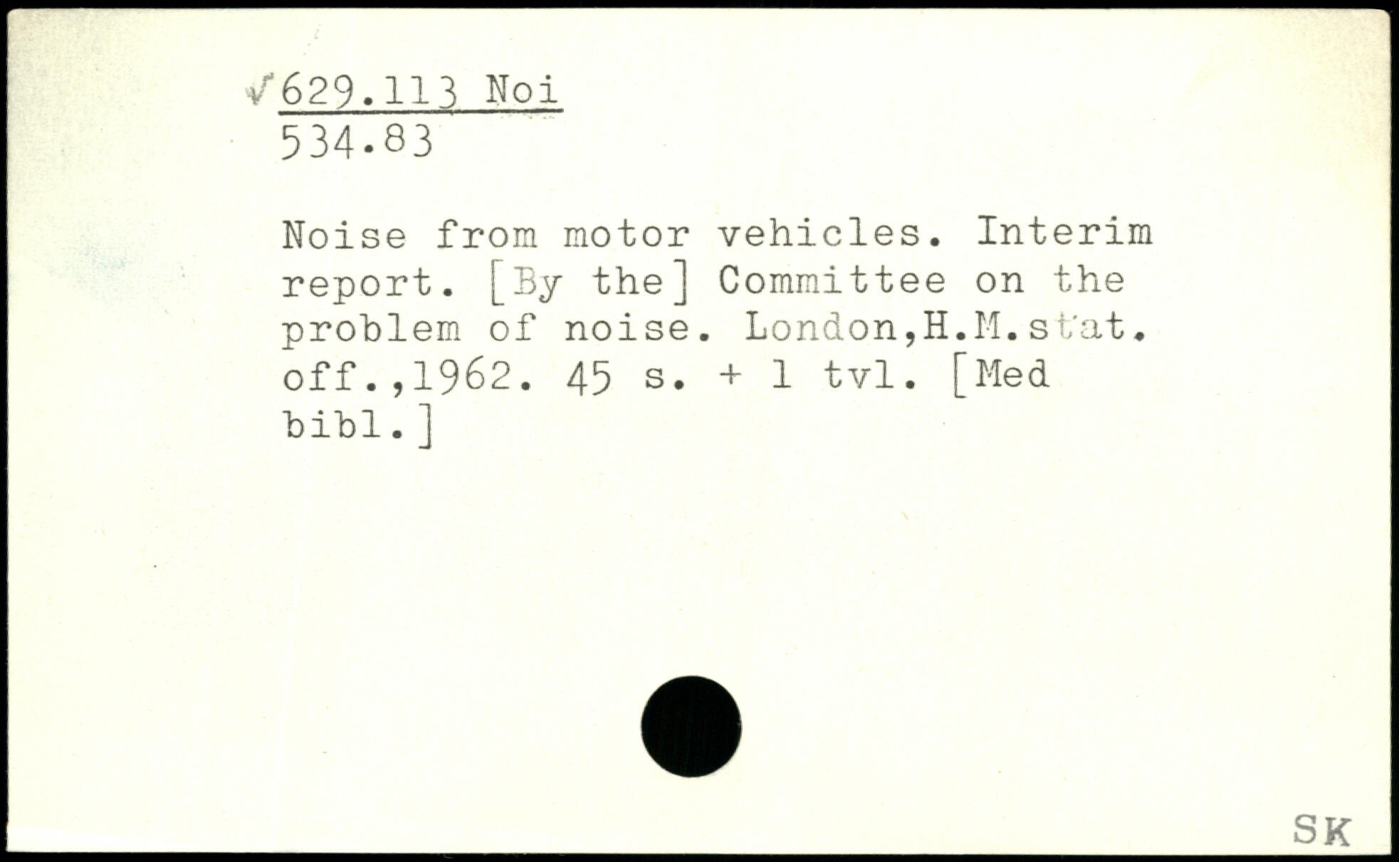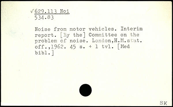 Noise from motor vehicles. Interim report. [By the] Committee on the problem of noise. London,H.M. st'at. off.,1962.