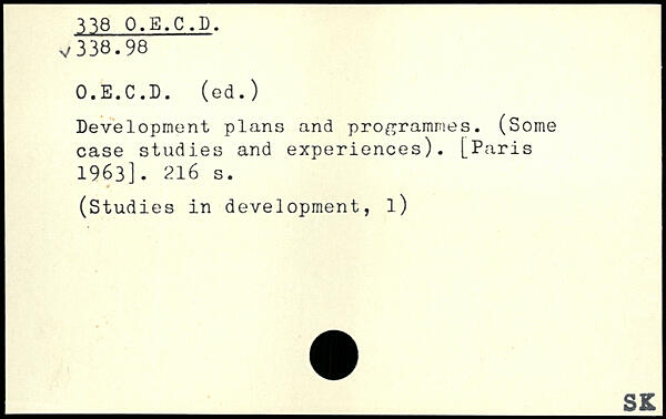 Development plans and programmes. (Some case studies and experiences).