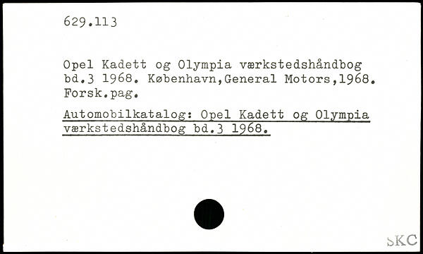 Opel Kadett og Olympia værkstedshåndbog bd,3 1968.
