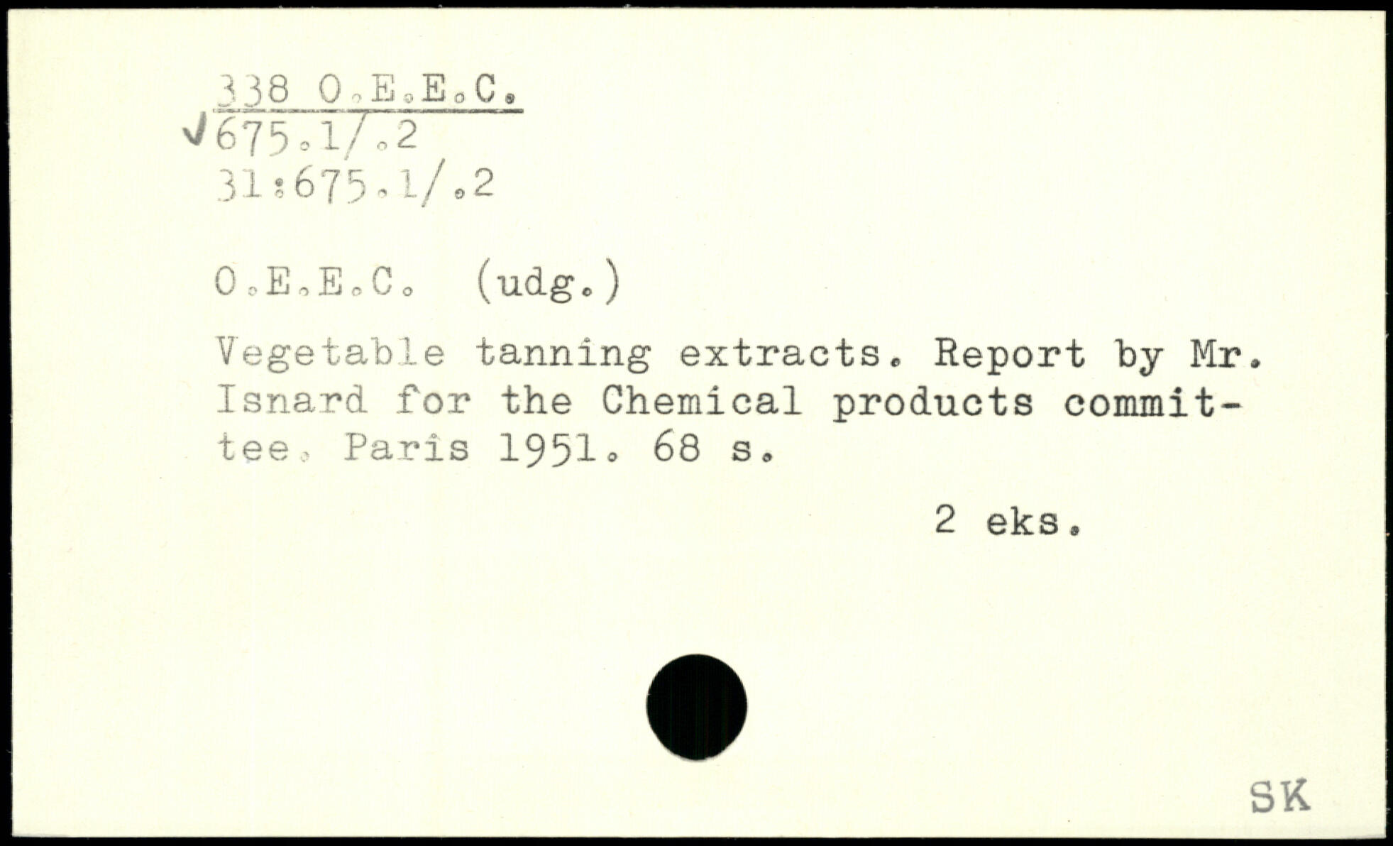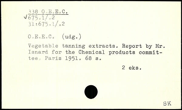 0.E.EoC<> (udg.) Vegetable tanning extracts. Report by Mr. Isnard for the Chemical products committee.