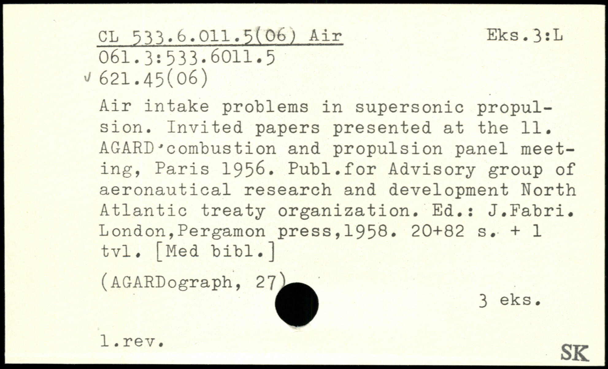 Air intake problems in supersonic propulsion. Invited papers presented at the 11. AGARD■'combustion and propulsion panel meeting