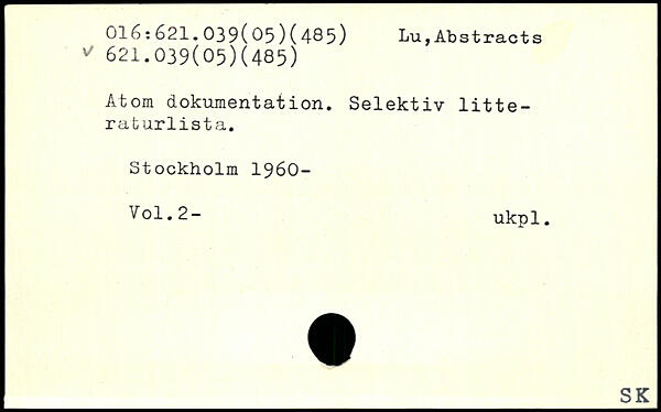 UDK: 016:621.039(05)(485), 621.039(05)(485)