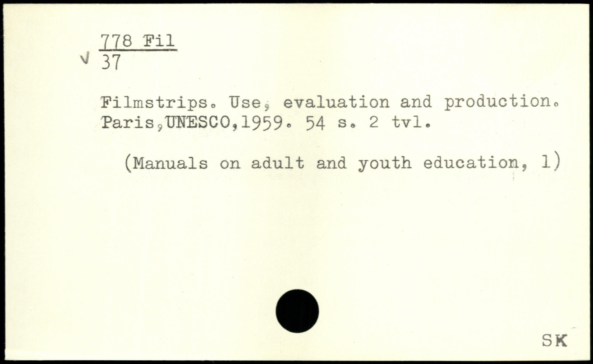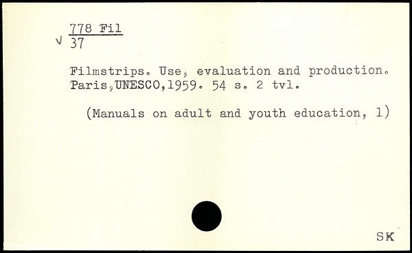 si 37 Filmstrips, TJses evaluation and production, Paris? UNESCO, 1959