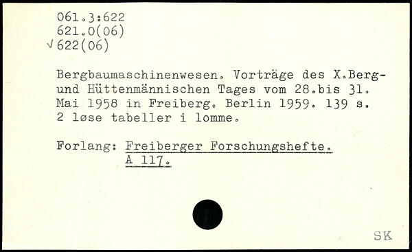 Bergbaumaschinenwesen,, Vorträge des X.Berg-und Hüttenmännischen Tages vom 28.bis 31. Mai 1958 in Freiberge