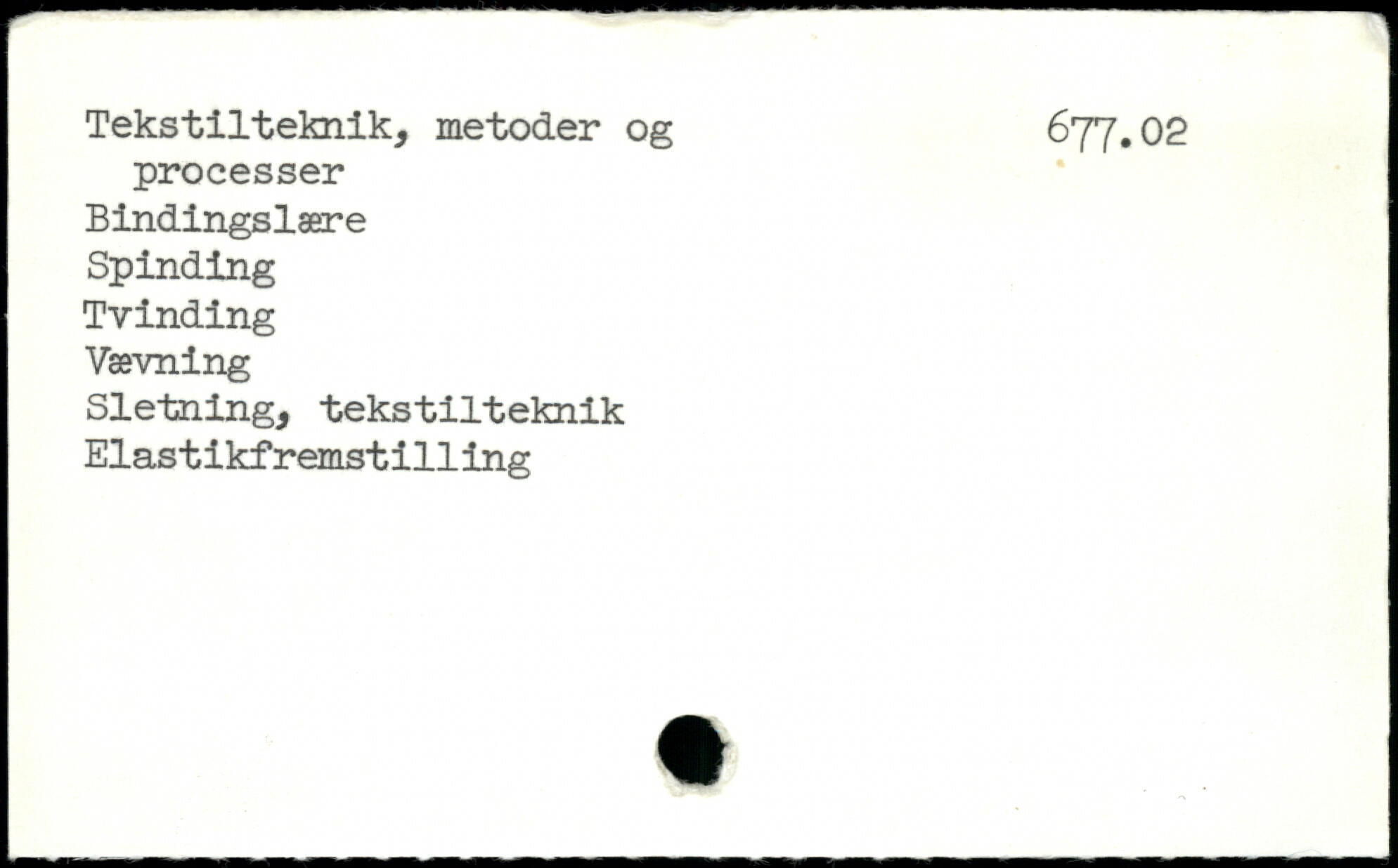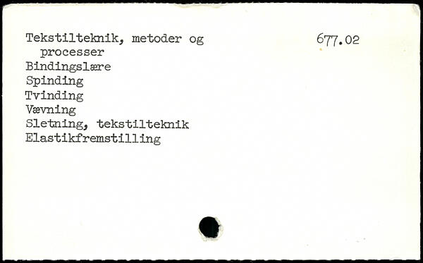 Tekstilteknik, metoder og 677.02 processer Bindingslære Spinding Tvinding Vævning Sletning, tekstilteknik Elastikfremst1111ng