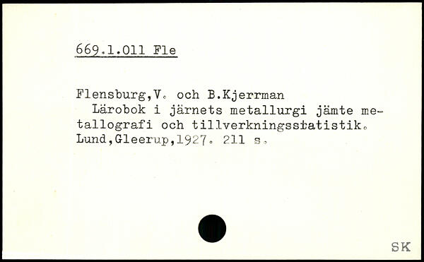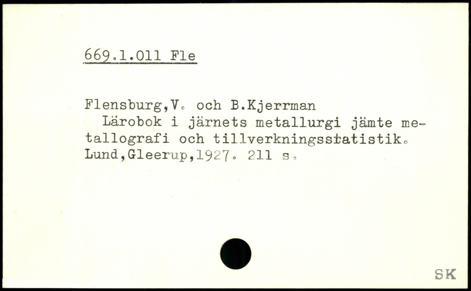 Flensburg,Vc och B.Kjerrman Lärobok i järnets metallurgi jämte me-tallografi och tillverkningsstatistiko