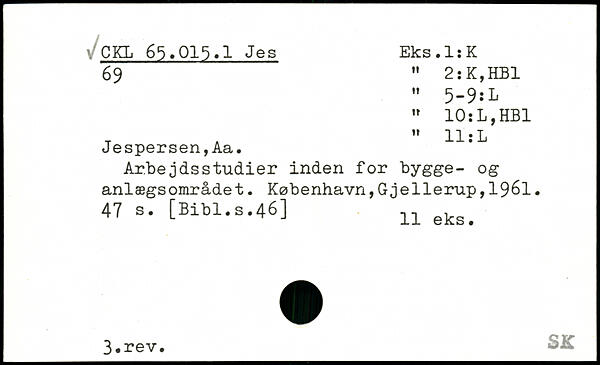 Jespersen, Aa. Arbejdsstudier inden for bygge- og anlægsområdet. København,Gjellerup,19&1.