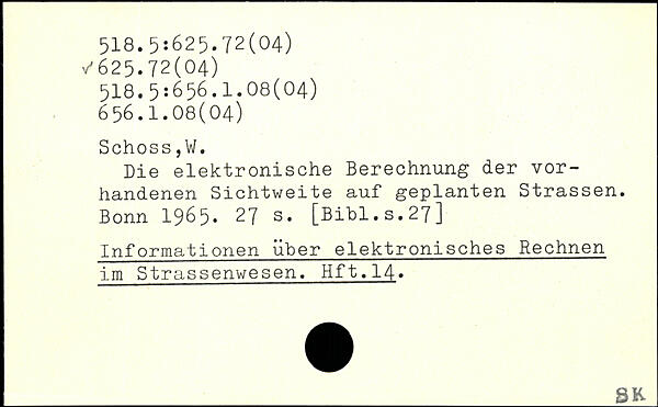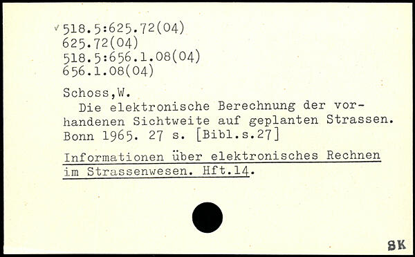 Die elektronische Berechnung der vorhandenen Sichtweite auf geplanten Strassen. Bonn 1965.