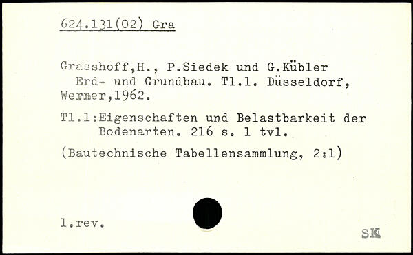 Grasshoff,H., P.Siedek und G.Kubier Erd- und Grundbau. Tl.l.