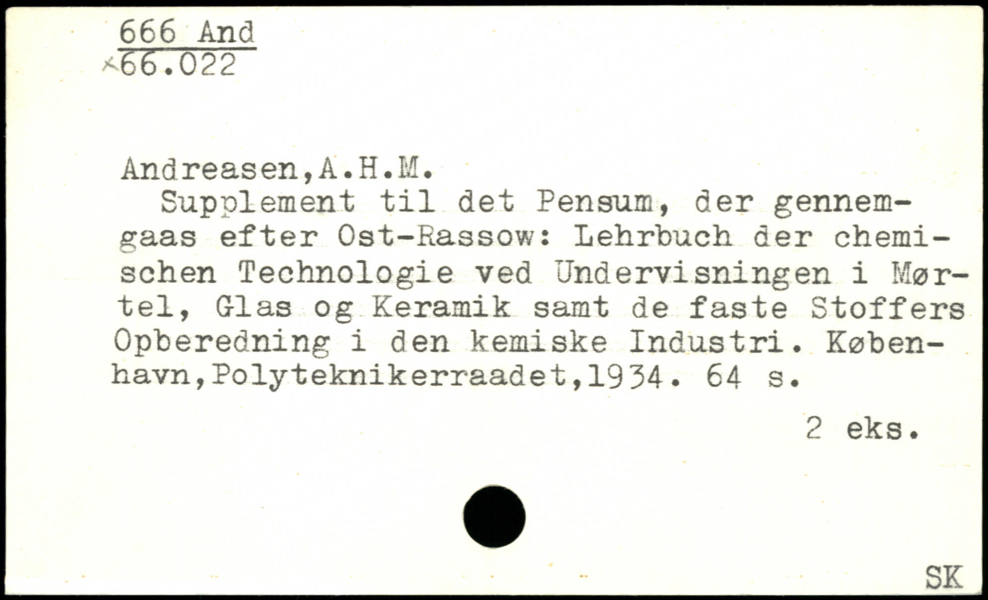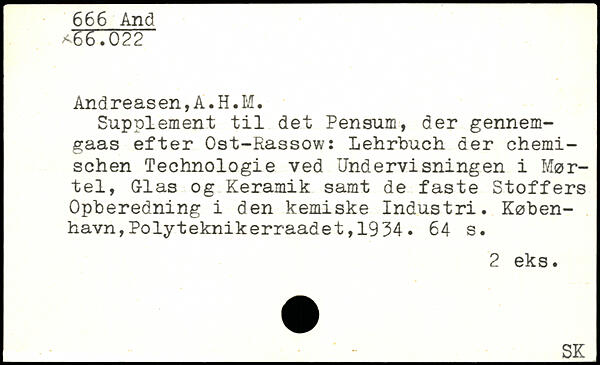 Supplement til det Pensum, der gennem-gaas efter Ost-Rassow: Lehrbuch der chemischen Technologie ved Undervisningen i Mørtel, Glas og Keramik samt de faste Stoffers Opberedning i den kemiske Industri.